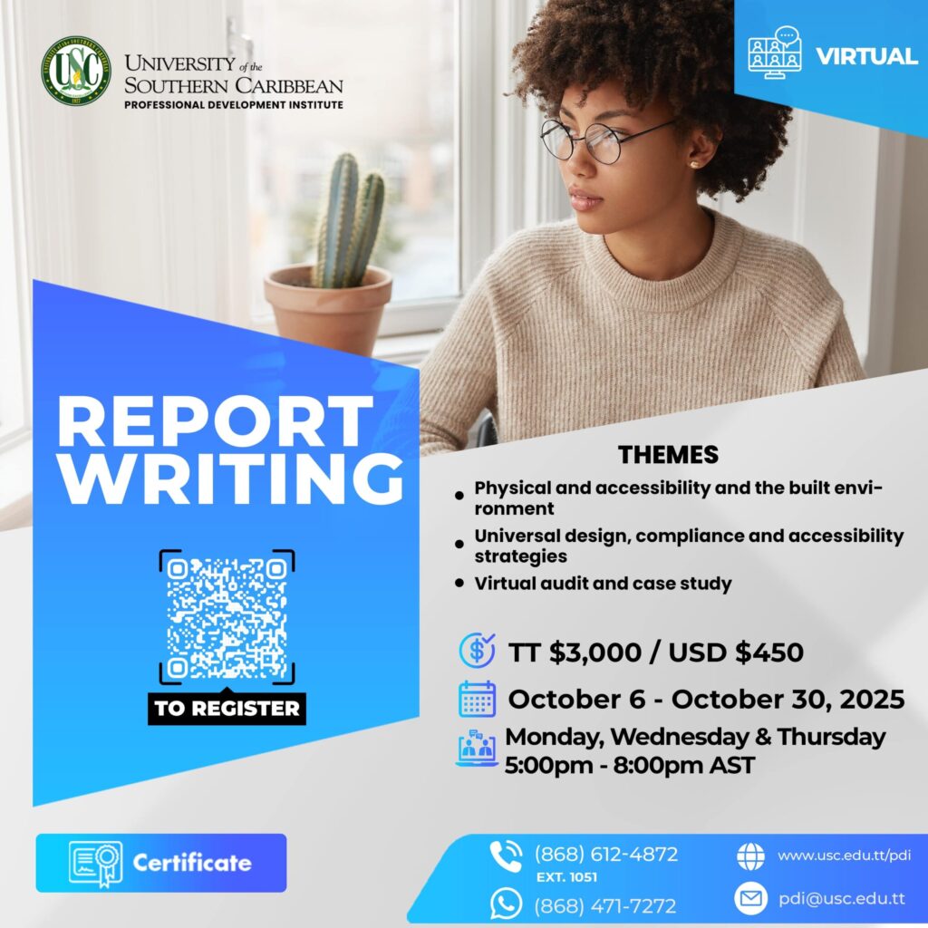 Report Writing is a short course that is delivered in the span of 4 weeks. Classes are held on Mondays, Wednesdays & Thursdays from 5 pm – 8 pm AST.